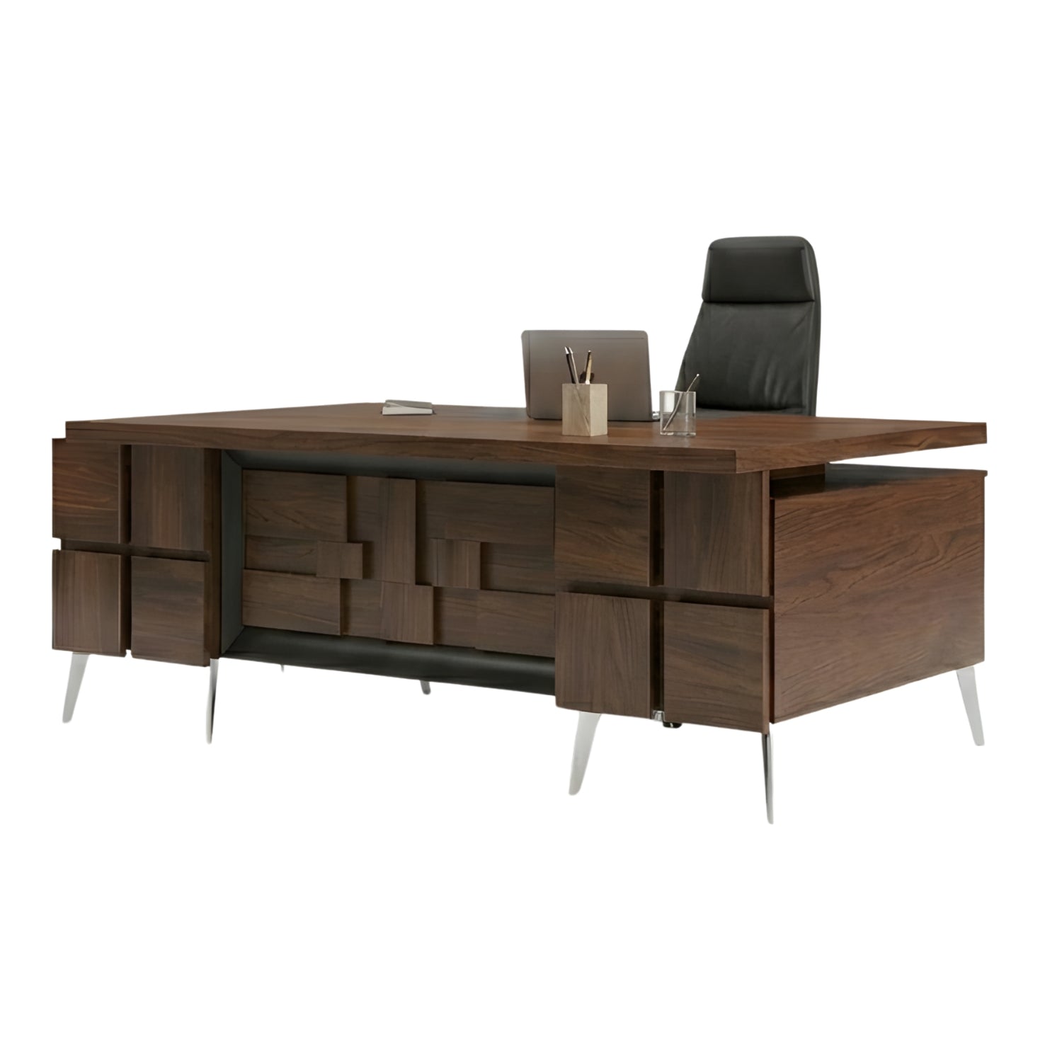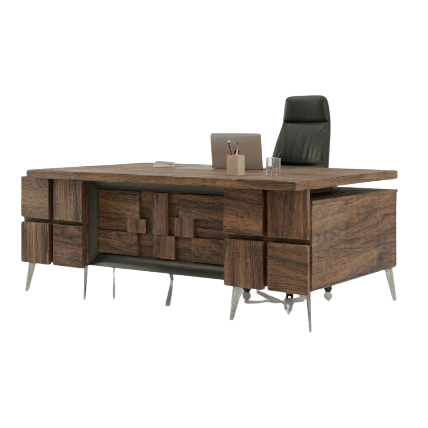 Elevate your workspace with a desk that blends architectural boldess with natural warmth. Designed for the modern leader, this executive suite makes a statement before you even say a word.